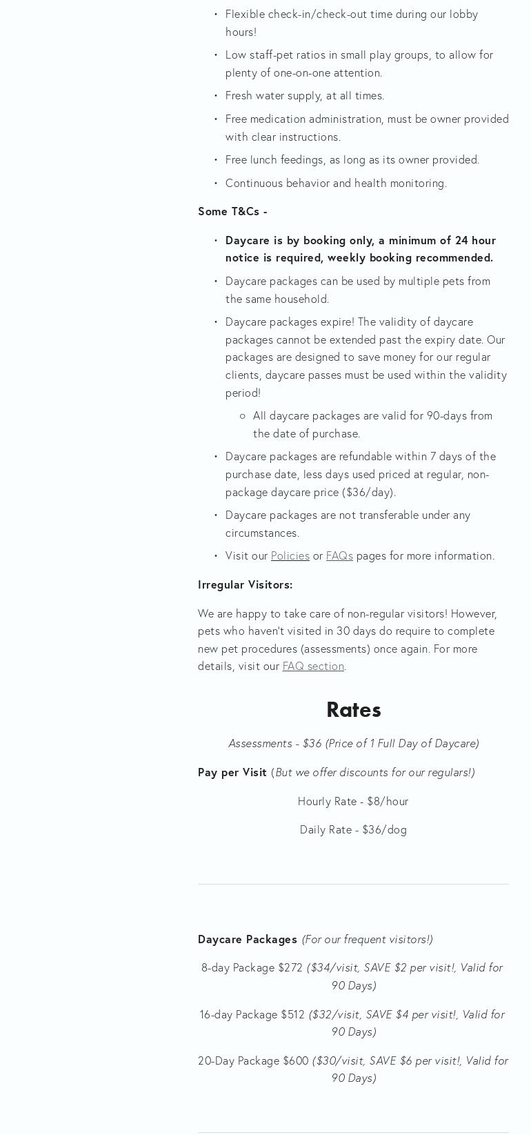 I sent Rex for a sleepover for a week, he had so much fun that he wasn’t too happy to come home. I loved being able to see pictures of him throughout the week and knowing he was safe and cared for. I have been sending Rex there for daycare for the past 6 years, and he’s always taken well care of and always happy coming out.