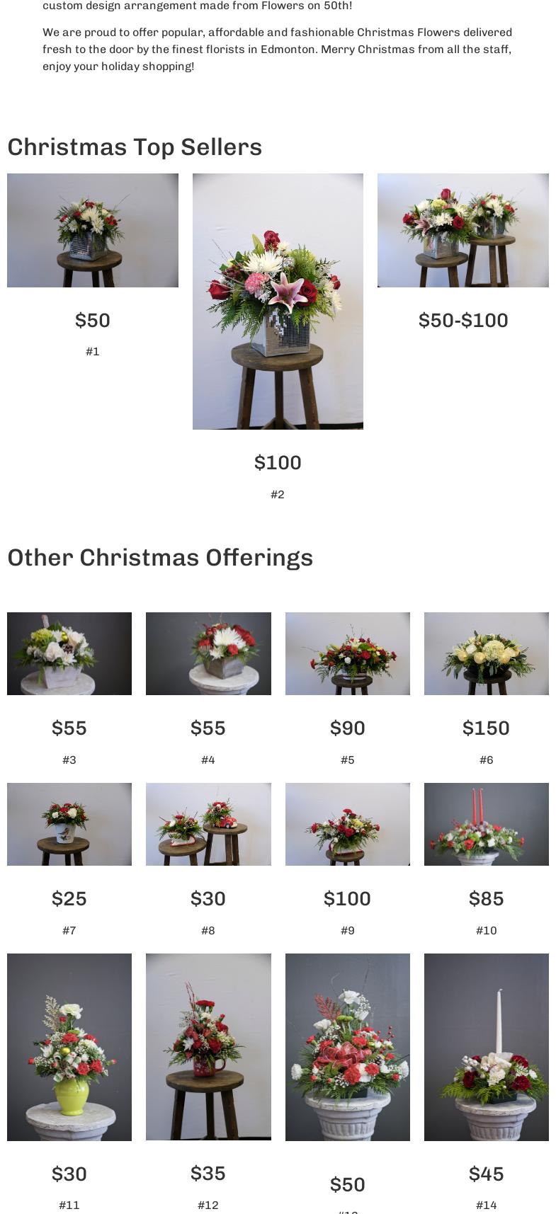 Ordered 2 arrangements for delivery during the Christmas season. Delivery was fast and the arrangements are gorgeous with most flowers still lovely, two weeks later! Highly recommend. This shop will be my choice going forward.