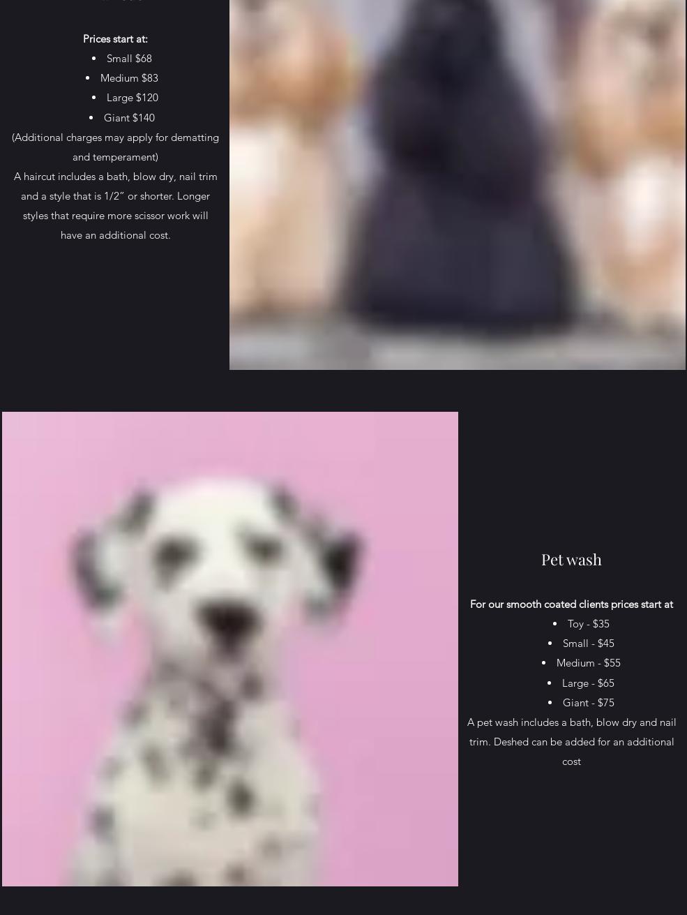 Absolutely amazing! Friendly and knowledgeable staff took in my two very large senior dogs (who are still very strong and energetic for their age) with confidence and grace. It was my boys first grooming experience (besides myself) and they handled it waaay better than expected! My boys were noticeably happy to be freshly pampered, properly de-shedded (husky) and shaved down (sheepdog). Cut their nails no problem, their paws were the cleanest I’ve ever seen. I was so incredibly impressed and nostalgically happy to see them looking younger and handsome as ever! 10/10! ❤️Also: was the best priced compared to everywhere else I checked!