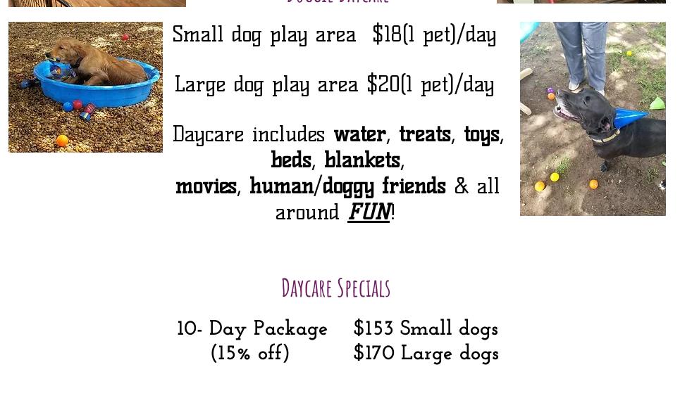 If you need somewhere to take your dog to burn some energy and get love during the day, this is the place. Our Lab goes to doggie daycare every day and he starts dancing in the back seat when we pull up. He loves it and I know he is in good hands. Great staff!