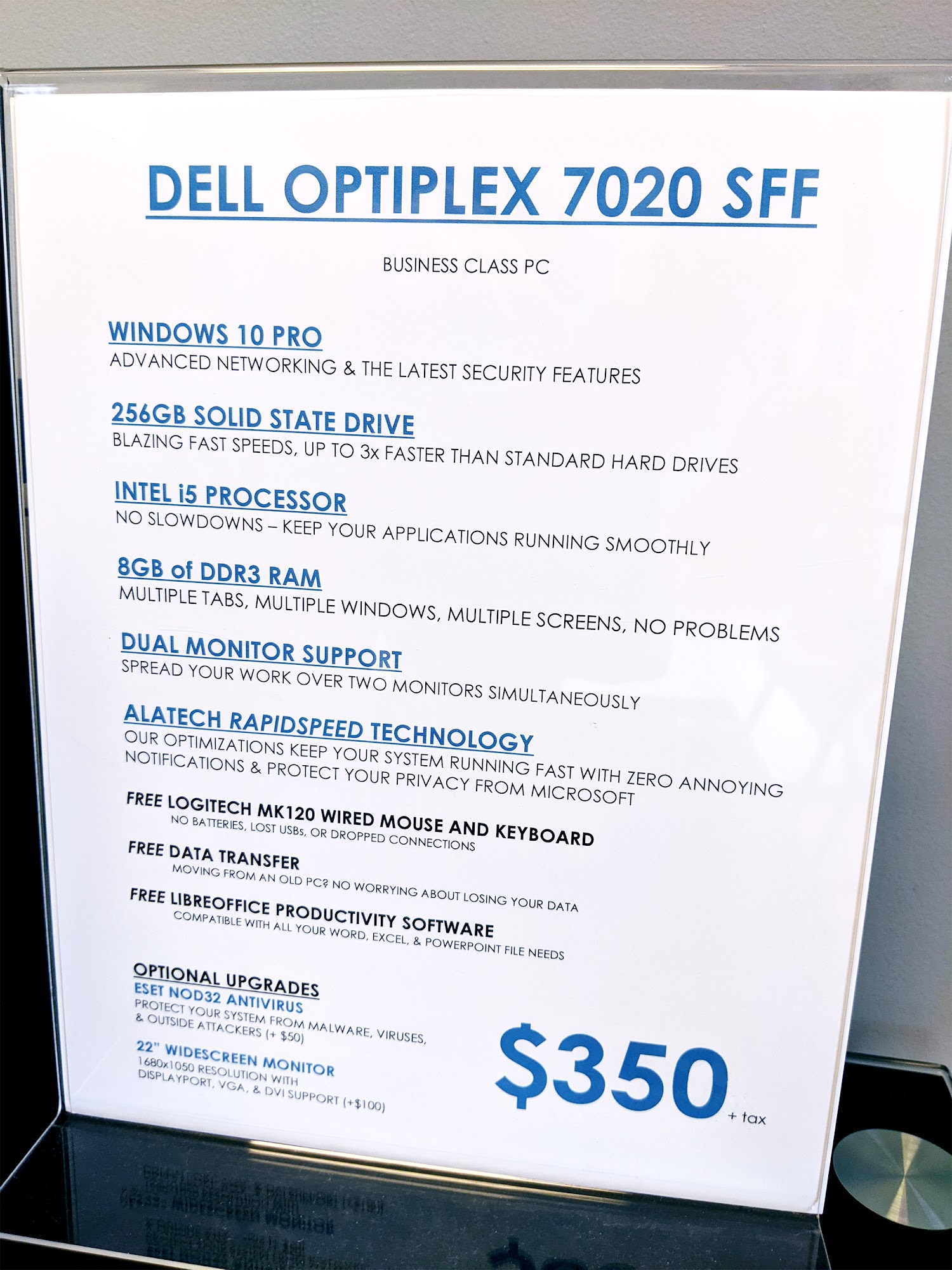 Bought a computer and can not believe how much faster this one runs than my old computer. All the techs are knowledgeable and so nice. Also very reasonably priced services. Best computer company in town!
