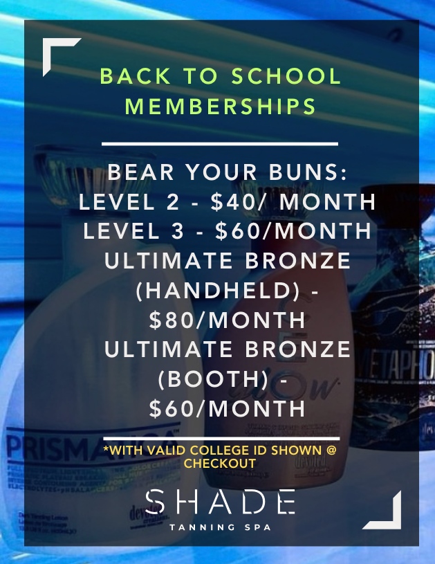 I was a little nervous to try SHADE in Conway, because I always go to the same place in my hometown, but as soon as I got there I felt immediately welcome! They were so nice and accommodating and made me feel extremely comfortable! Gracen did my tan and she was so nice! The next day they even gave me a follow up call to make sure I was happy with my tan! If I could give them more than five stars I would!