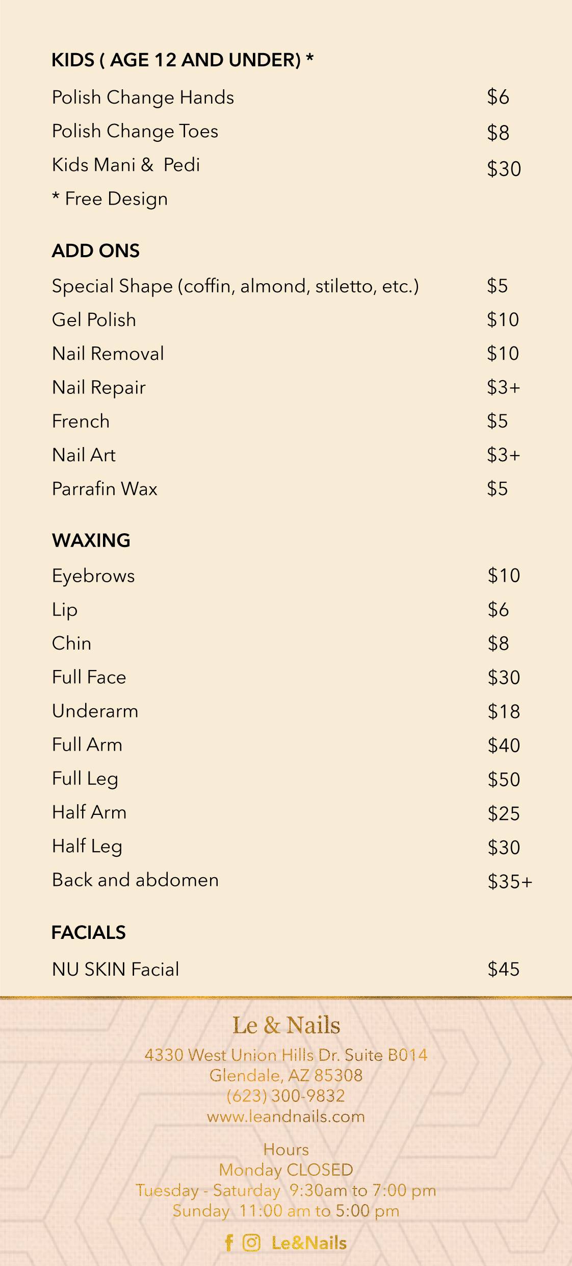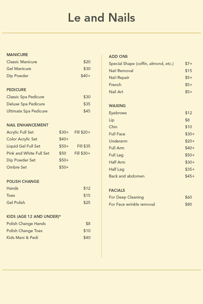 I highly recommend going to see Kim and Le & Nails! She is so amazing at what she does! I've never been unhappy with the service she provides she is friendly efficient and always does her best! She does such amazing work and is always so kind and really care about being gentle and making sure your happy!