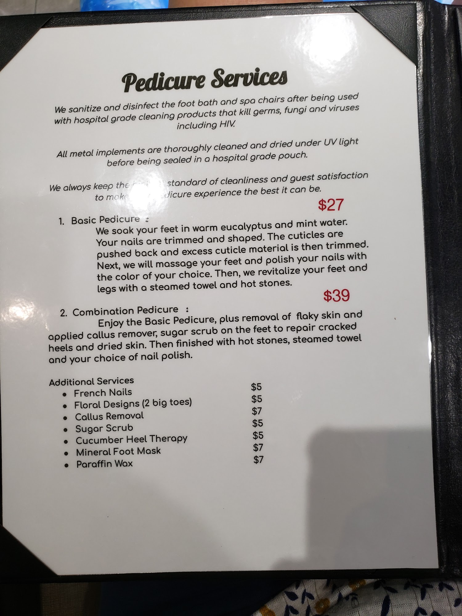 I’ve been coming here for a few months now, as they are right down from my apartment and not only are they always willing to make room for me without an appointment but they do such a fantastic job at reasonable prices! They both are so thorough with pedicures and manicures and willing to pivot with requests like sticks on my nails!