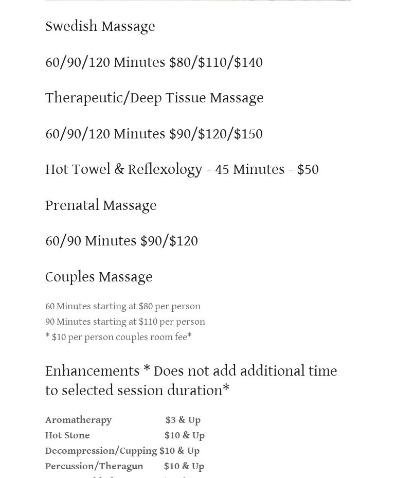 I saw Diana today for a post Christmas-craziness massage and I was so impressed. I asked her to focus on my neck and shoulders since that’s where I hold most of my stress and she did not disappoint. I left there feeling so much better than when I walked in. If you’ve been thinking about booking, this is your sign. You will not regret it.