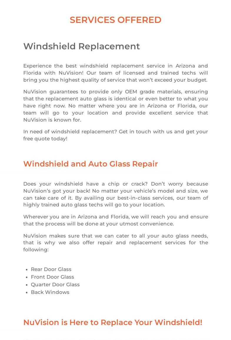 Chayanne's service was Exceptional!! He called and informed me he was arriving. When he arrived he was very transparent on the entire process which I was impressed. He looked at the car with me to ensure all was good before beginning. Chayanne completed the process in a timely manner and reviewed the new windshield with me. He even advised me that I will need a new battery soon. He let me know to call him if I need anything. Bottom line is on a scale of 1 to 10 Chayanne clearly receives a ?!!! I will always recommend Nu Vision Auto Glass to friends and family solely on the Superior service I received from Chayanne!!!