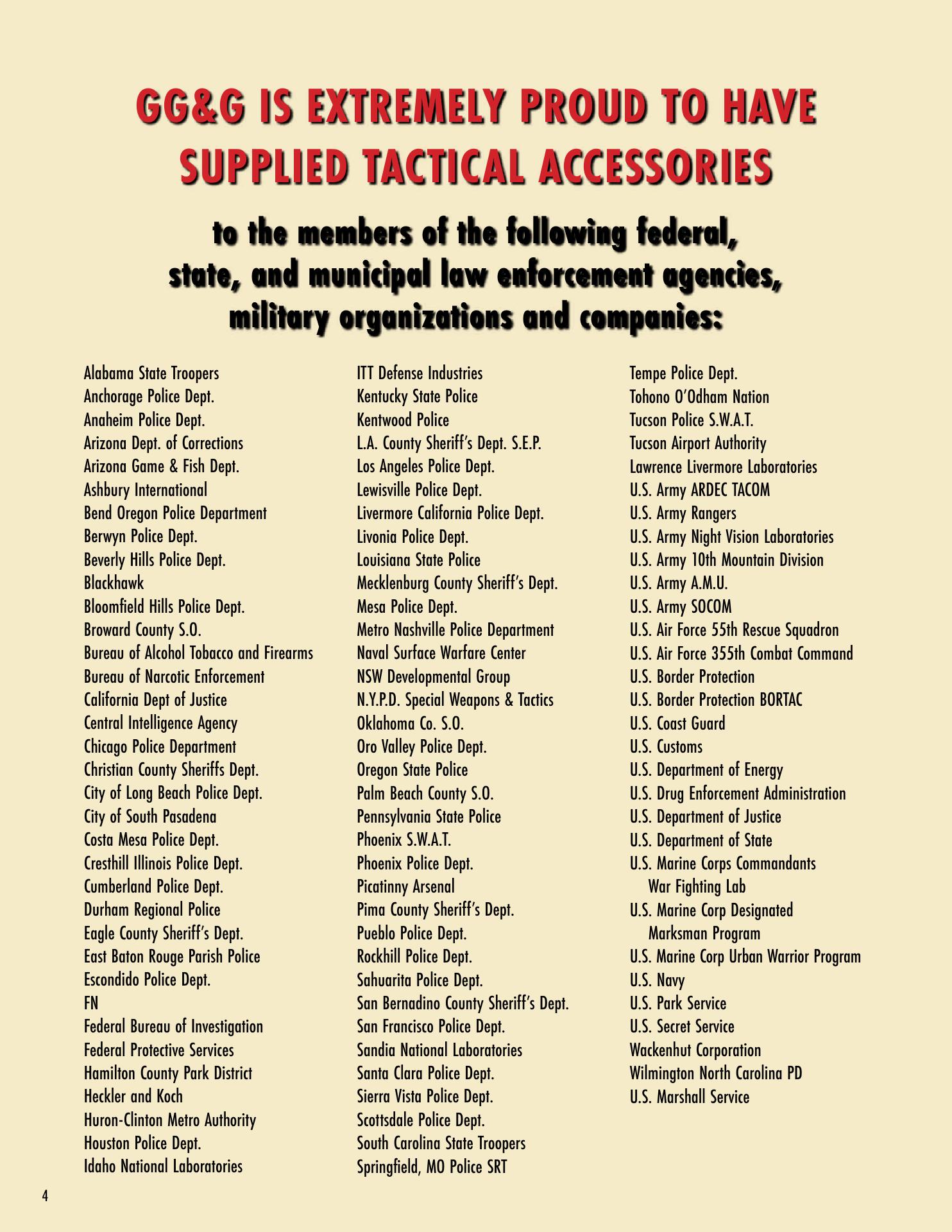 GG&G is excellent not only for their quality products I bought to upgrade my my Beretta 1301, but for their excellent customer service. Breny was so patient and helpful in helping me pick out exactly what I wanted and their military discount is sincerely appreciated. I only wish I was aware of GG&G before I purchased 1301 accessories from their competitor that has not phone number and doesn't return phone calls.Thanks again GG&G!