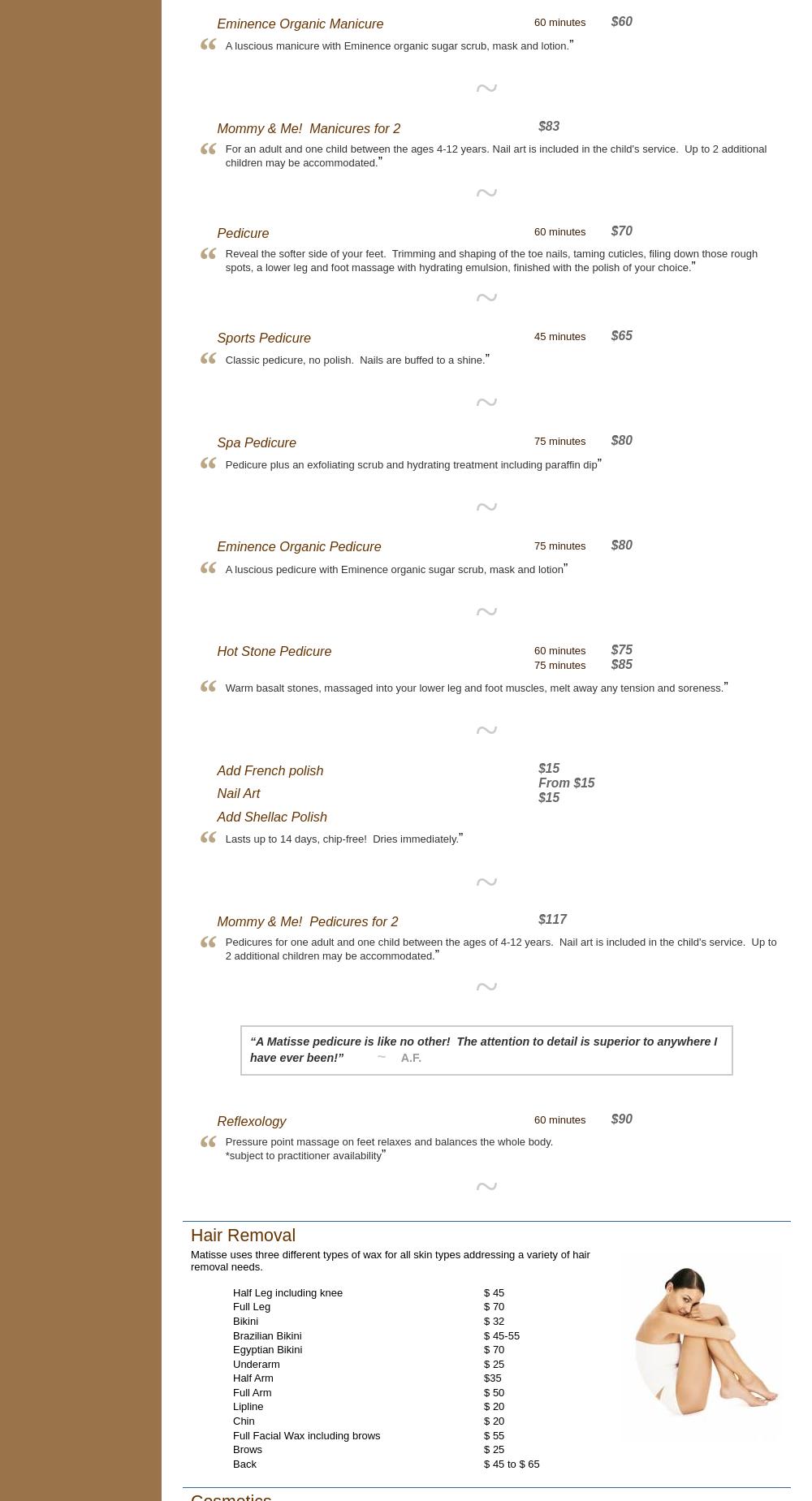 So I finally got the nerve to book a pedicure at Matisse Day Spa. What a wonderful experience. Another gentleman showed up and a person I hadn't run into in a long time. Great conversation. Bronwen my pedicure Queen made me feel totally at ease and performed magic on these aged tired feet. Looking forward to my next visit and probably try a facial package next. Gentleman, don't hesitate to book an appointment. Your body deserves it. Cheers!