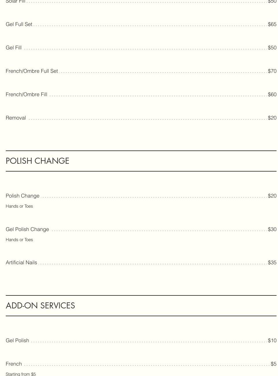 Excellent service, funny and friendly staff. We opted for the basic/regular pedicure and were ecstatic with the treatment we received. We will both definitely be back. The place was clean and hosted a relaxing environment. So many colors to choose from and so many options on their massage chairs. The wallpaper, chandeliers and foot baths were gorgeous! Overall great experience! Thank you!!