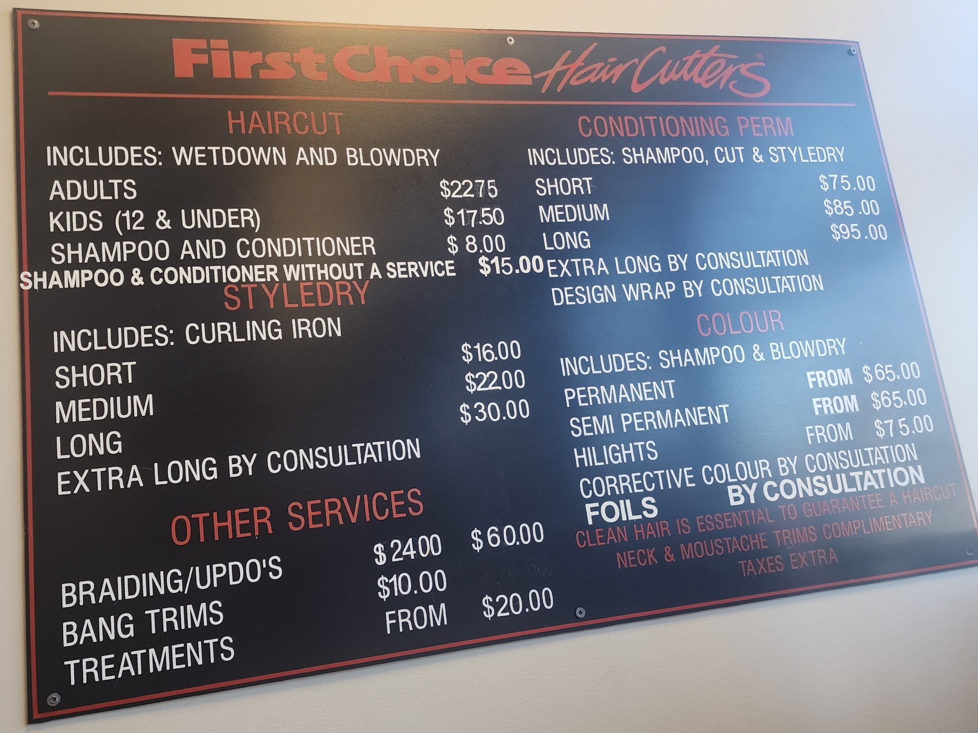 Very kind, friendly service from Baillie, AND at a price that won't break the bank! Thank you to all the ladies that work at First Choice Haircutters Nanaimo, Metral Station!!