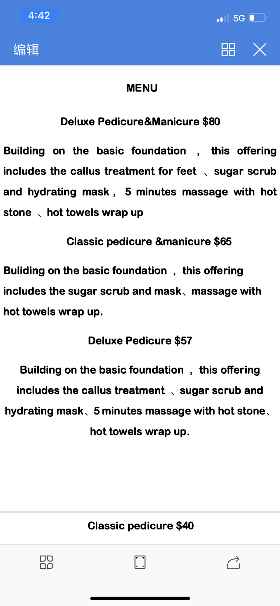 I am always impressed by the quality and details of my gel manicure when i come here! The designs always come out so nice compared to other salons and they always do a an excellent job! They spend a lot of time to make sure it looks good and my nails can last 2 months whenever I come here !! it's amazing! It's definitely worth trying :)