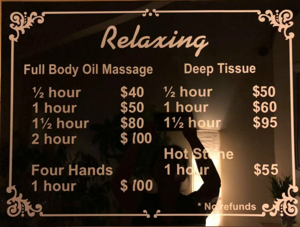 If you are looking for a professional,clean excellent relaxation i most recommended this place to anyone they are very understanding and they will make you feel comfortable and peaceful.