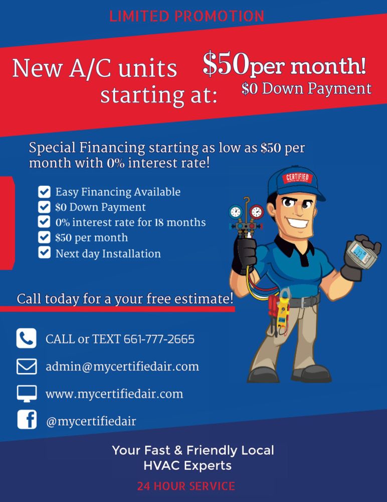 I highly recommend Certified Heating & Cooling for any AC/Heater needs. They are prompt and very professional, Excellent customer service and stay in communication before and after service is done.