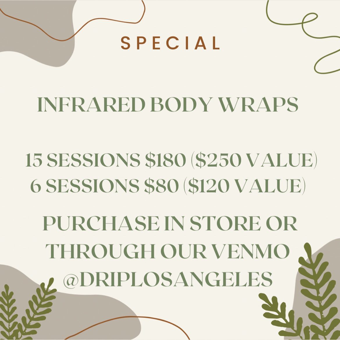 I just recently bought one of their infrared body wrap packages and I'm happy I did. Drip Los Angeles are clean, and the staff is friendly. I love the ice roller and cold towel before your session is over and it feels amazing. It feels great to have alone time while burning fat and calories. Will also get a cryo package. Very please with my results.