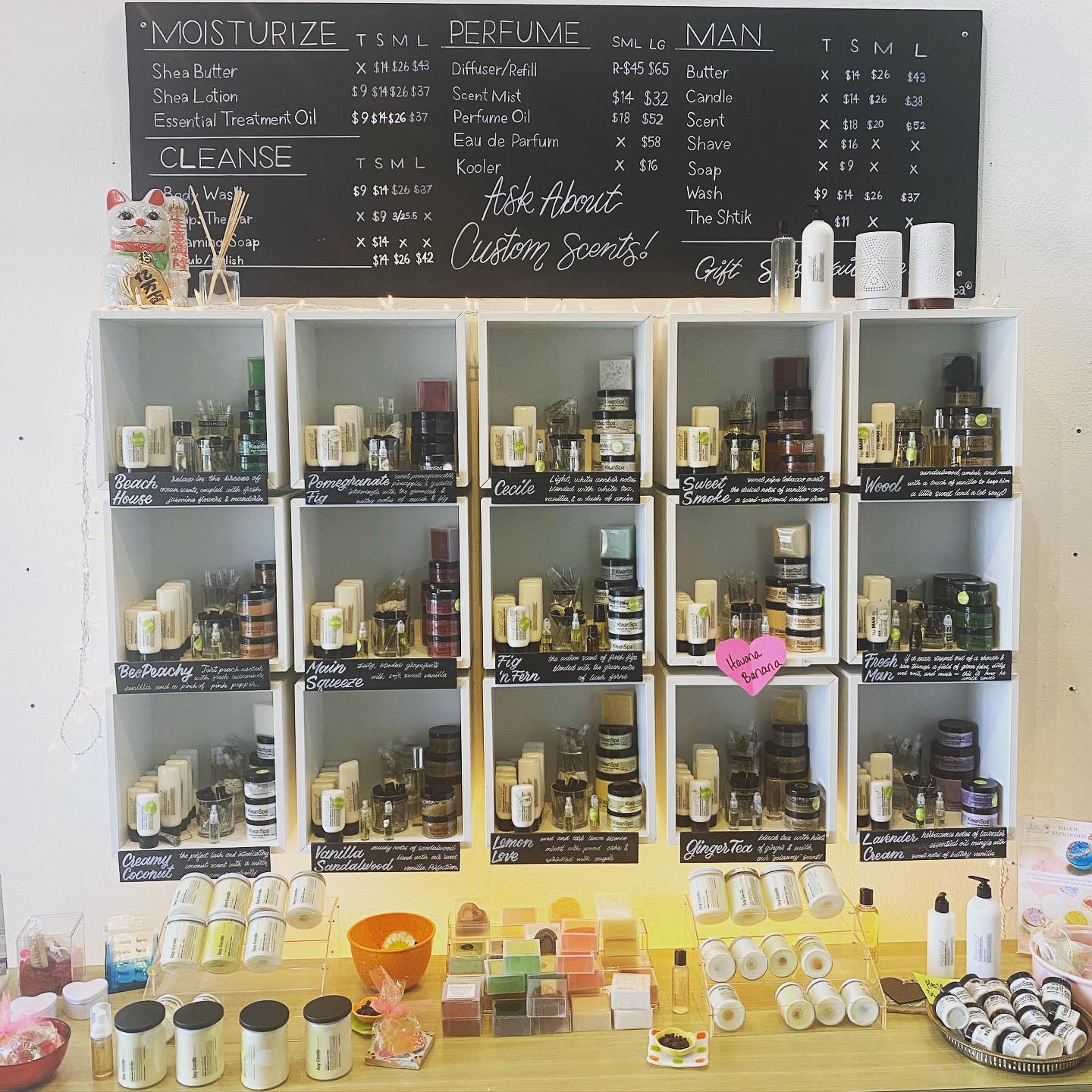 I cannot say enough good things about this cute store! Tucked inside Phoebe Peacock, my partner and I were drawn by the front display, so we walked in not knowing how amazing this place would be. My guy and I both got custom scents made, which we were both so proud of. Karen, who made our scents, is incredibly knowledgeable on mixing fragrances, she was great!