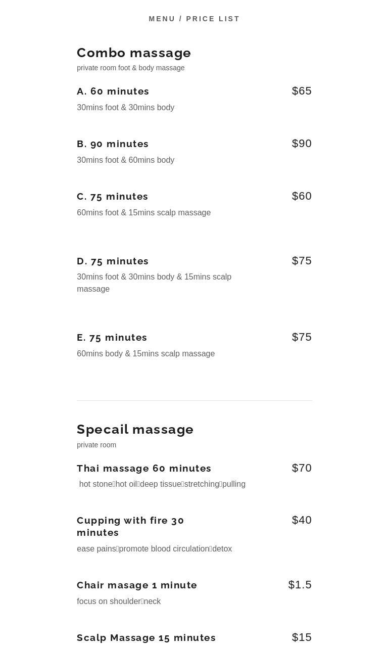 Staff is nice and welcoming. I always book deep tissue massage with fire cupping. The massage therapist that worked with me were knowledgeable and apply the right amount of pressure and ask for my preference when applying more pressure. I tried a few other places but I always come back to this one.