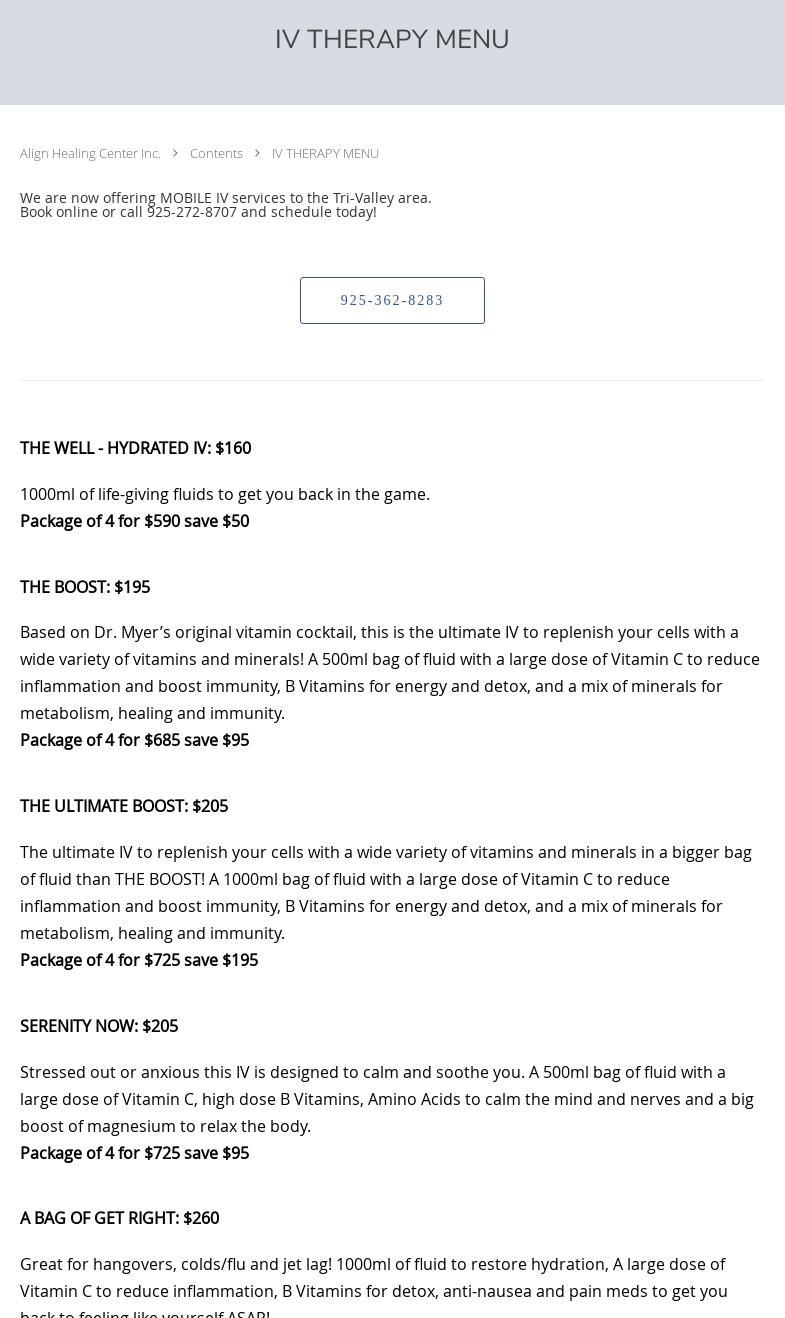 I have been getting Ozone IV's at Align Healing and they have made such a huge difference in my health! They have great nurses that walk you through the process and make sure to take it slow. I'm thankful to have this place in Danville. I can always get an appt when I need one and they are very accommodating to my schedule.