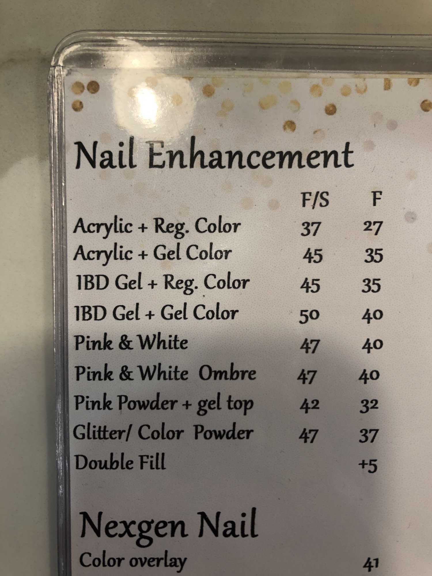 I’ve been here a few times and it’s normally pretty good but this just wasn’t a great experience. The tech lathered my fingers in oil which concealed how poorly she had done with my manicure. Every single bottom on my nail is lifting up— my appointment ended at 1:10PM and I am submitting this review at 1:55PM same day. One nail is crooked, the lines aren’t clean (which I did notice in the salon but chose to let go). They’re really nice people but it just felt rushed and I’m getting married this Friday so I’ll need to find time to have someone fix it.