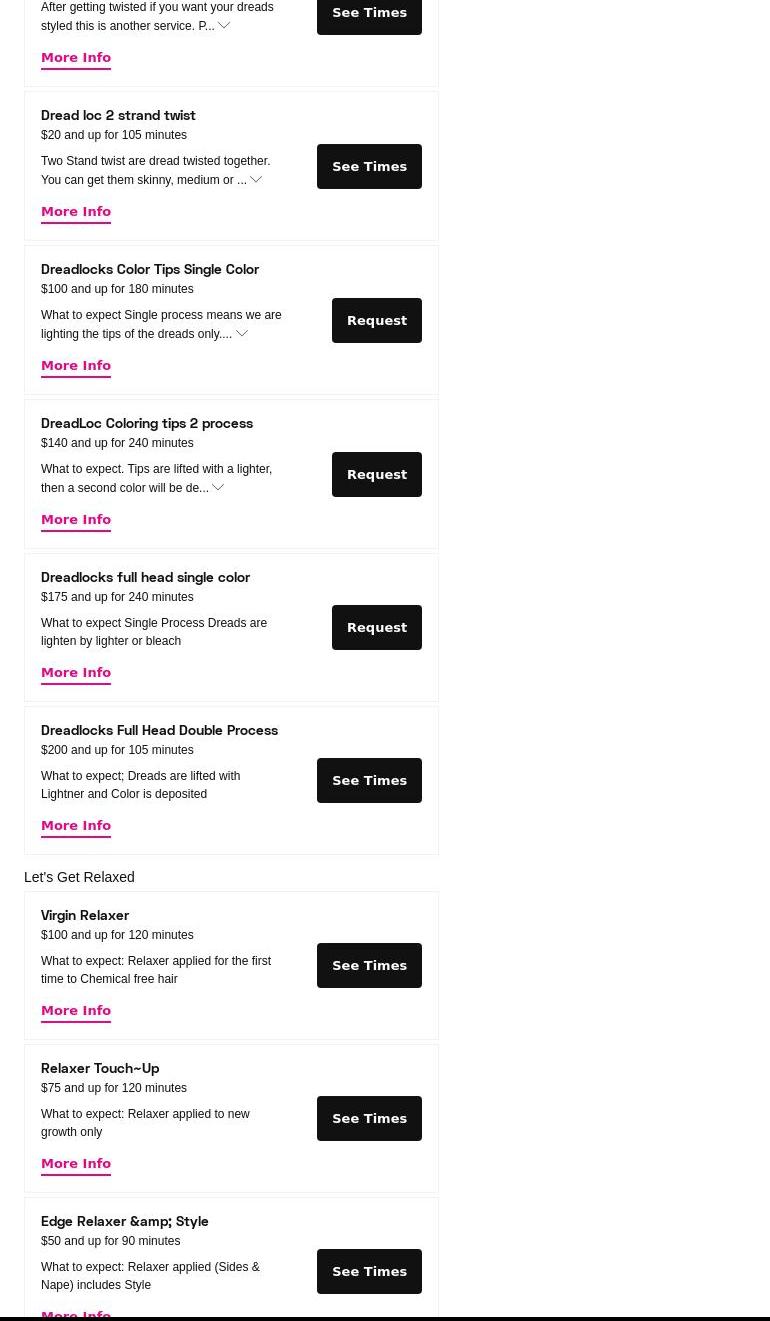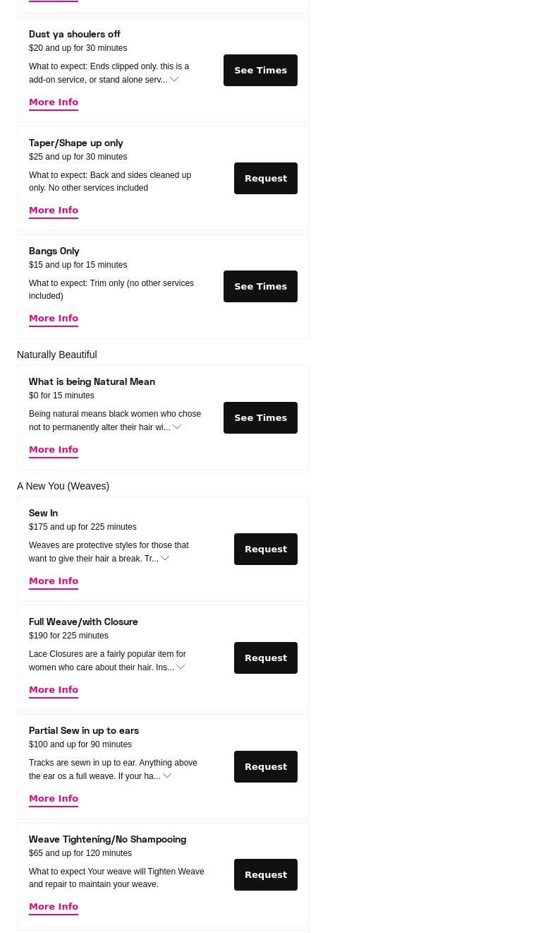Another perfect score. I decided to go back for box braids as I start a long road to recovery after unexpected complications following recent surgery. Tending to long, very long, wavy hair is difficult enough with two arms and nearly impossible with just one. Tina did my braids today and again, they are beautiful. It is my first time getting them done and now I'm kind of obsessed. I love the feeling of community in this place. I was so comfortable and relaxed, I found myself dozing off a few times. Thanks again Ladies. You're top notch I recently had a serious surgery that removed my top left rib. To avoid burdening my husband and daughters with caring for my... read full review