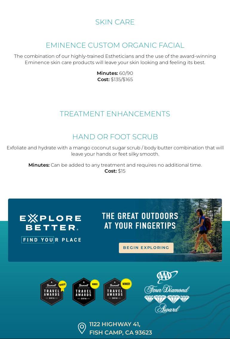 Hands down one of the best lodges I have ever stayed at. I would love a list of all properties surrounding national parks for future bookings. The cottages, the service, the amenities and the food were all top notch. Great job Delaware North and Tenaya at Yosemite team. Thank you for making our trip so memorable, we can’t wait to return !