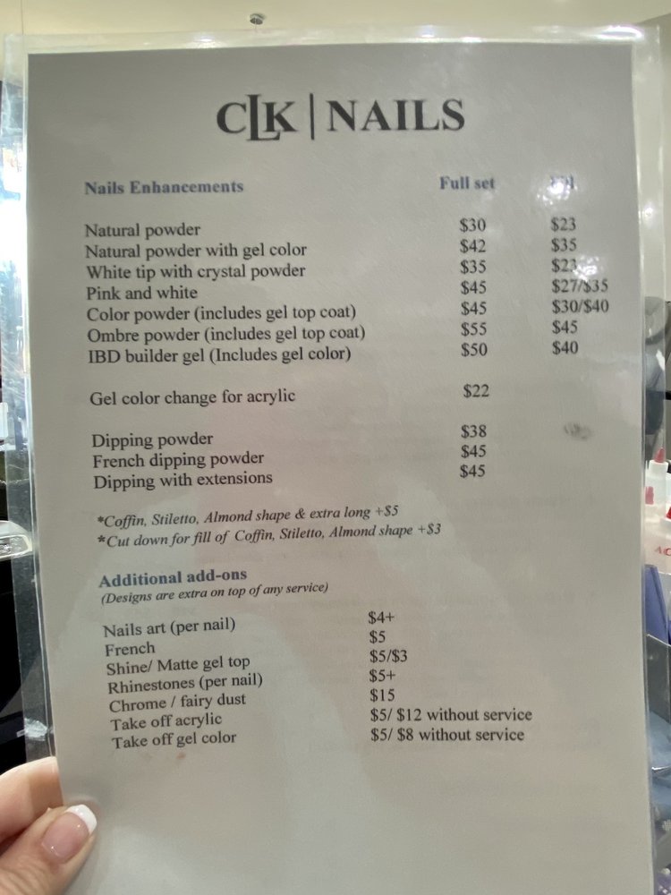 This nail salon is the absolute best! Every single employee is so kind and they are all very skilled at what they do. Always welcoming, always wanting to make you feel that they are happy you came in. It really does matter when you walk through the door to feel welcome. This is my favorite place hands down for quality, kindness, and great prices. Thank you CLK nails!