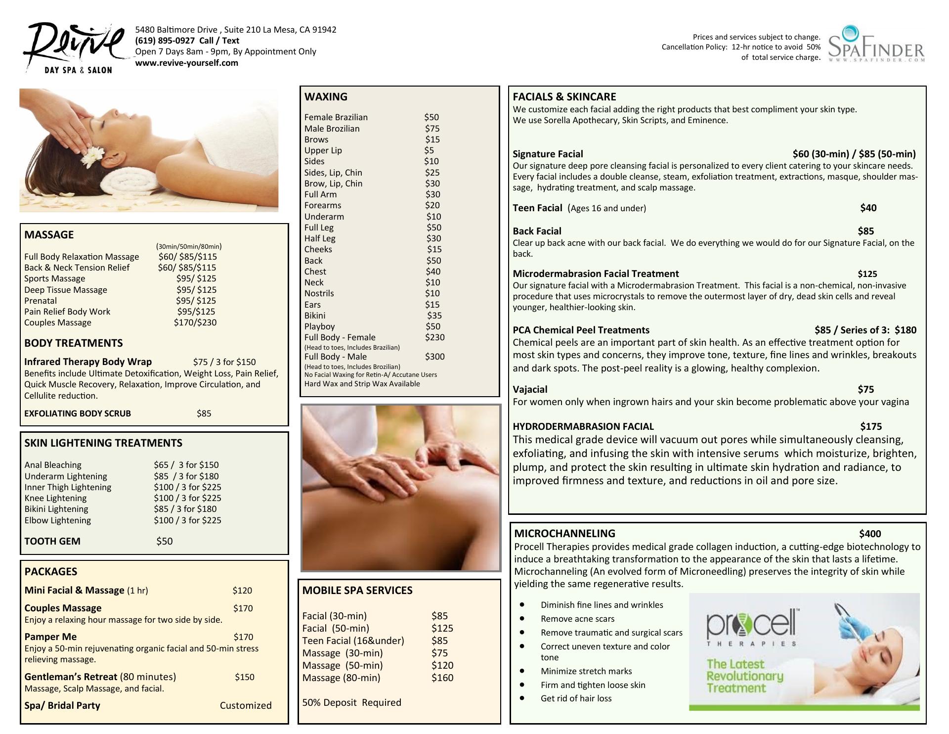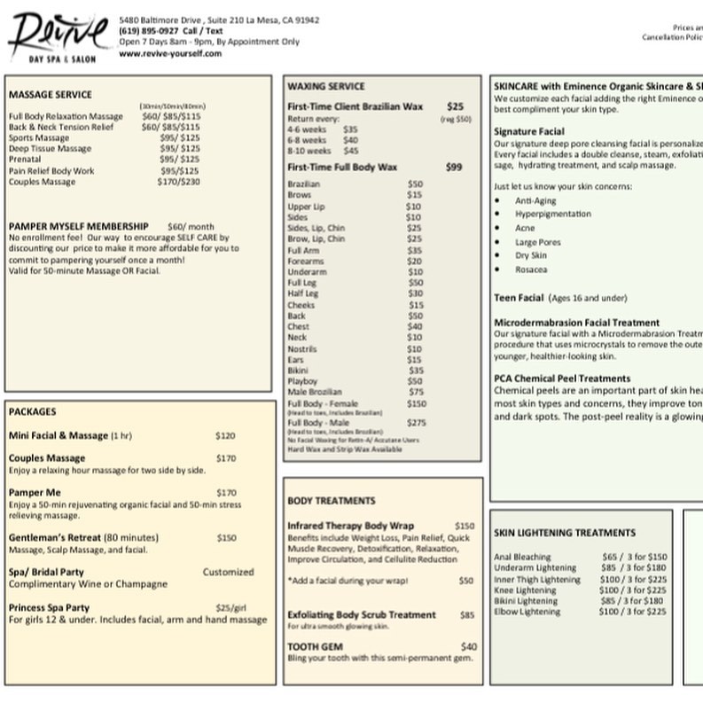 I love coming to this place! Jenna gives great facials, and I book regularly. She is knowledgeable and friendly too. Prices are resonable, and Revive Day Spa offers many time slots for appointments, more than most. I highly recommend! Thank Revive Day Spa for all you do!