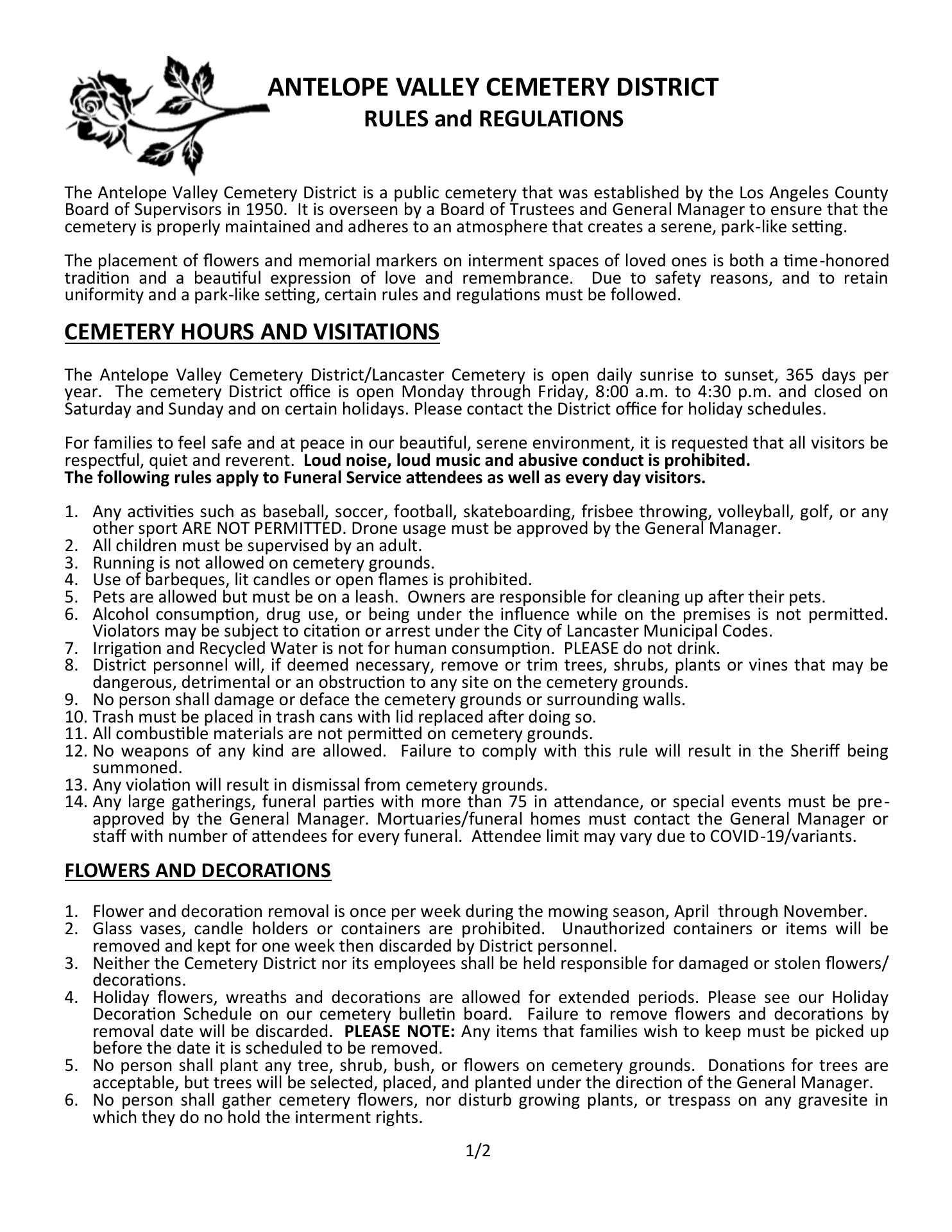 Lancaster Cemetery takes pride in the care and upkeep of their cemetery and its historical value to the Antelope Valley. The cemetery has a devoted staff. I love when the roses first bloom in the Spring, their beauty is absolutely breathe taking.