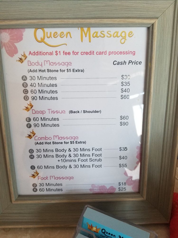 I love Queen Massage! They are very professional and the price is reasonable. The rooms are very clean. Although this massage is far from my home, I still choose to go here .5star!