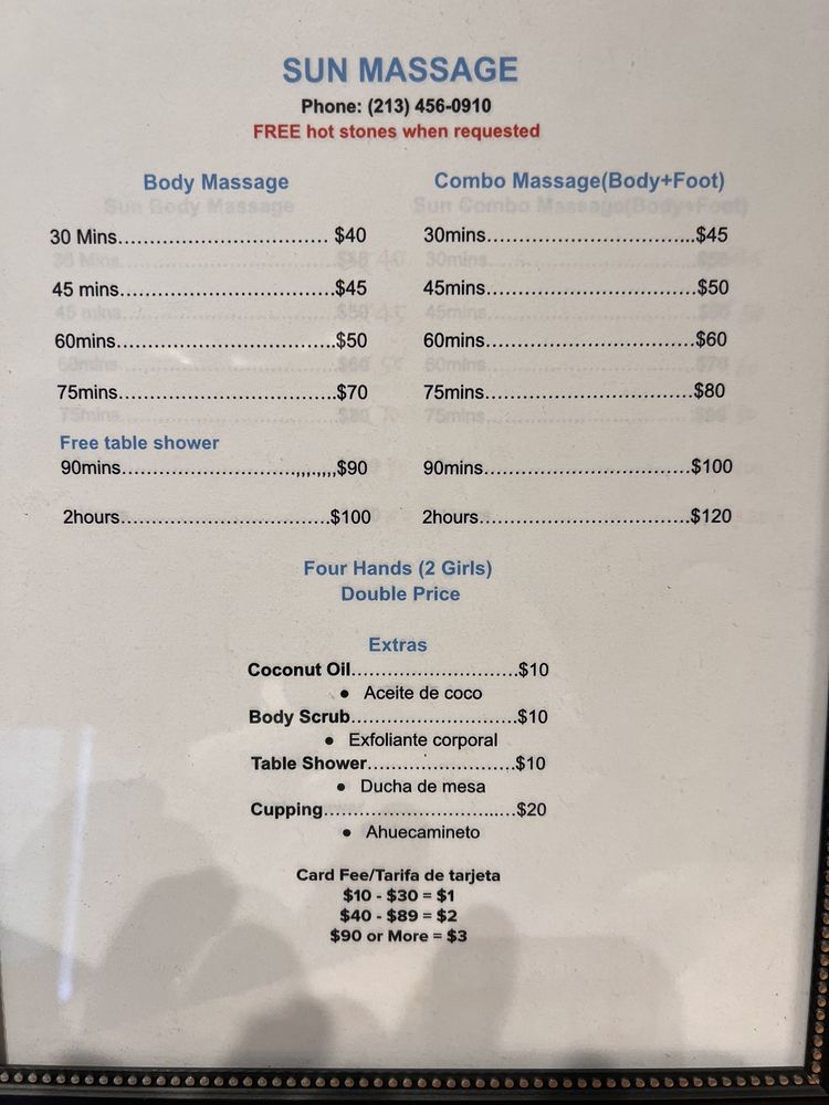 It's definitely a healing vibe going to get massages here! I recommend them to all my friends and family! Please do try the cupping it truly does help as an add-on. I easily find parking on Western every time or you can pay for valet but I don't mind walking a block for 2 hours of relaxation ;) The front desk gentleman is truly easy going and sweet! Its definitely my new local spot considering I just moved to the area!