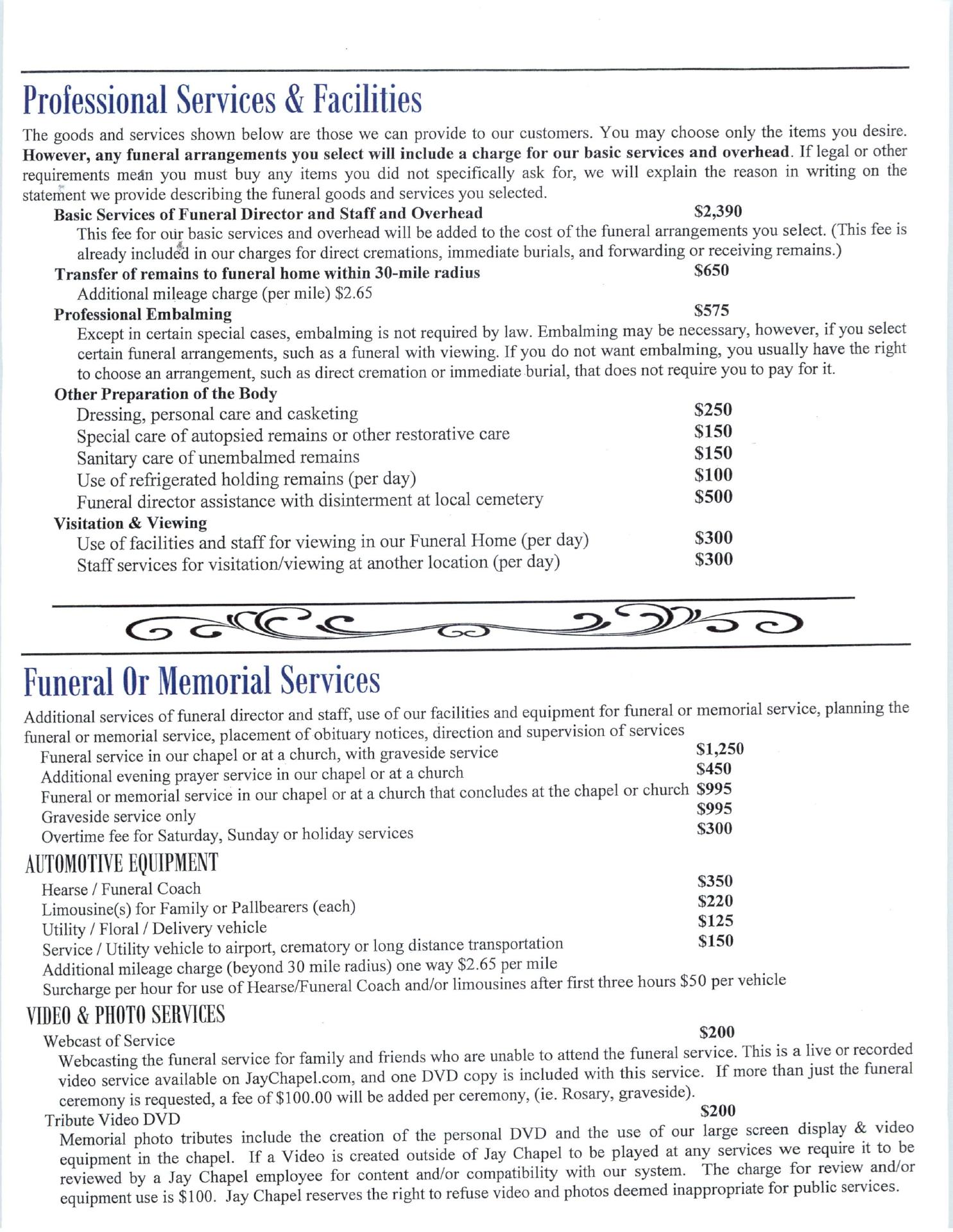 I want to thank Wayne and the entire staff at Jay's Chapel who helped guide our family through this difficult time. They were very helpful, kind and understanding. Our family is very satisfied with all the arrangements made. Wayne assisted us above and beyond in helping us through the arrangements. Our most sincerest thanks.