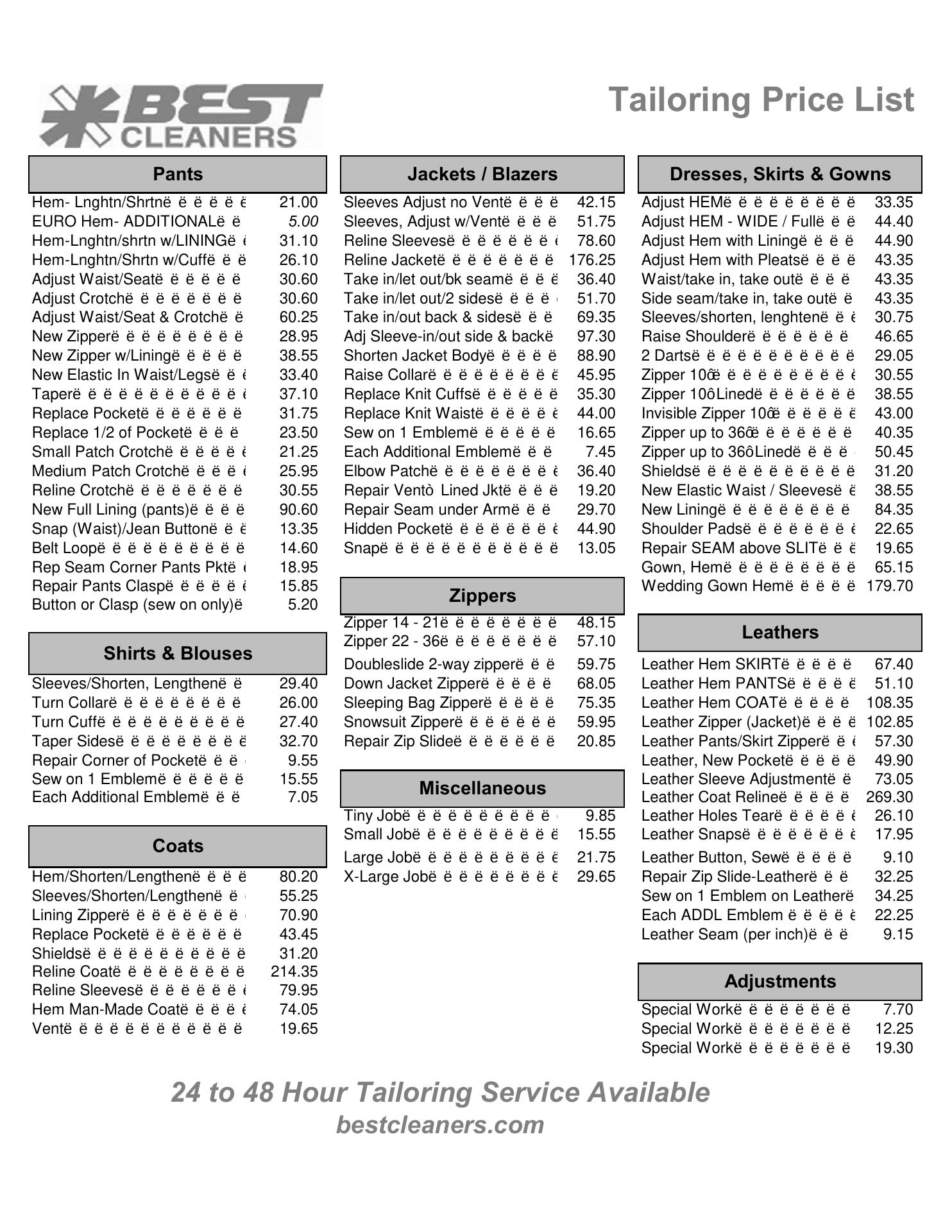 Most alteration places won't take undergarments or shapewear for some reason but I was referred over to Best Cleaners as I was told that they do. My fiancé and I showed up to a cozy little cleaners spot and a very sweet woman (I forget her name) greeted us with a smile and ready to help. I tried on my garment for her so she could take measurements. I told her what I needed and she delivered just that. It took no longer than a little over an hour and it fit perfectly when I tried it on. Her prices were very reasonable and I did not feel overcharged at all. She was happy to have our business and I'm very pleased with the result and fit of my garment. I'm... read full review