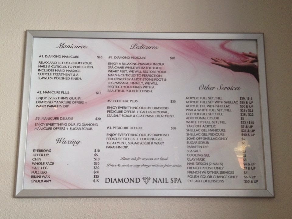 I haven’t had a mani/pedi in over a decade before coming to Diamond! I had the best experience. They took the time to listen to my concerns for my very thin and fragile fingernails and toenails and recommended what they thought would be best for me. They were very polite and everything was clean! I will definitely be coming back.