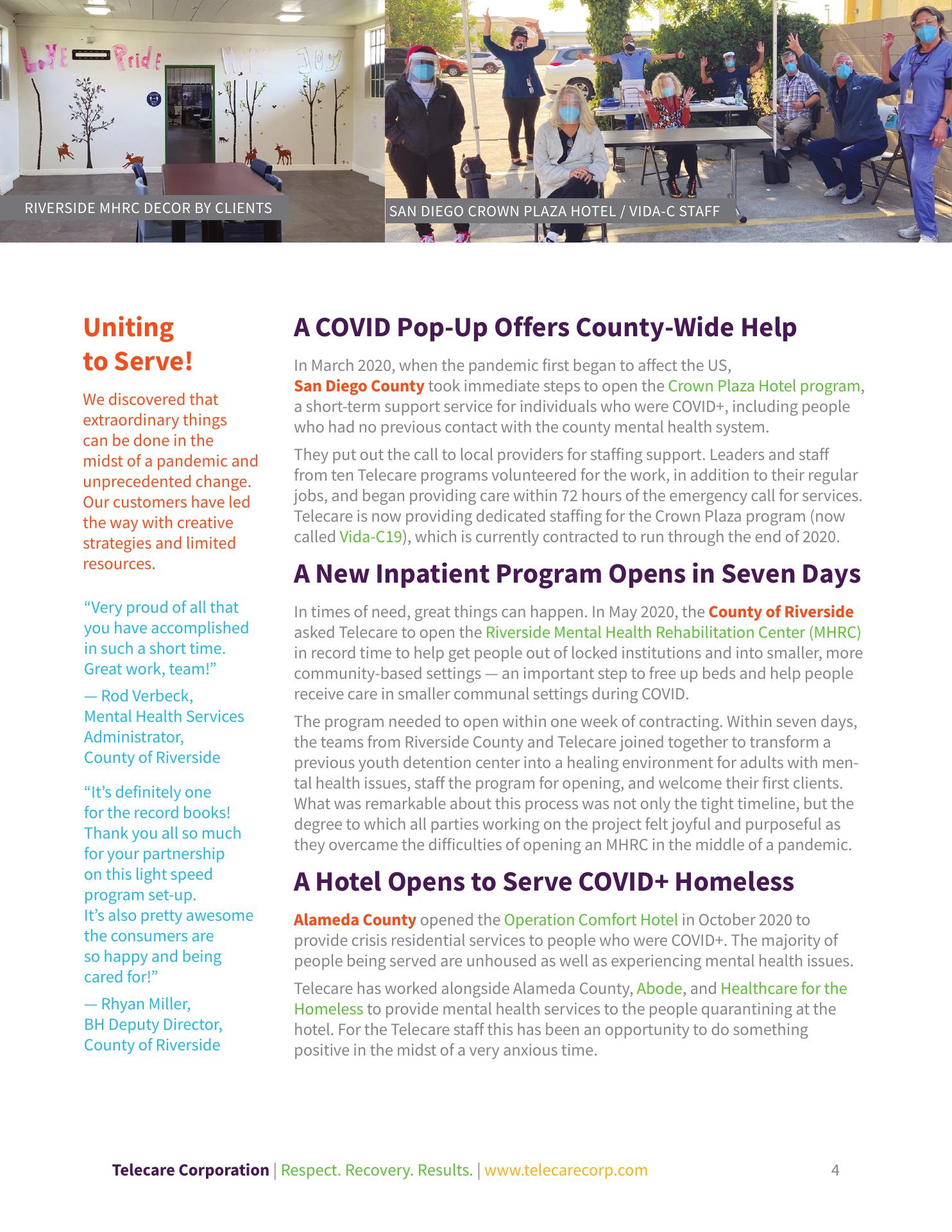 They put up with me and my bs. I'm sure that's hard enough. I'm not familiar with the entire staff, but those I am familiar with have treated me extremely well. They provide services that I never thought anyone would. The team telecare put together for me is the best care team I have ever had. They have gone above and beyond for me.