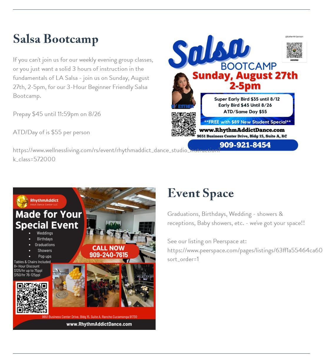 If you look up "2 left feet" under the Webster's Dictionary, there is a picture of me. I have been attending Rhythm Addict Dance Studio since December 2023 taking Salsa, Bachata & Cumbia classes. I have truly learned the fundamentals on how to dance these genres of dance thanks to all my instructors detailed/technical instructions and continuous feedback. Although I have a long way to go from being an advanced dancer, I do plan in the not too distant future to ask Esther to write a letter to the publisher of Webster's Dictionary requesting my picture be removed from "2 left feet" and added under "100 % certified Salsero."