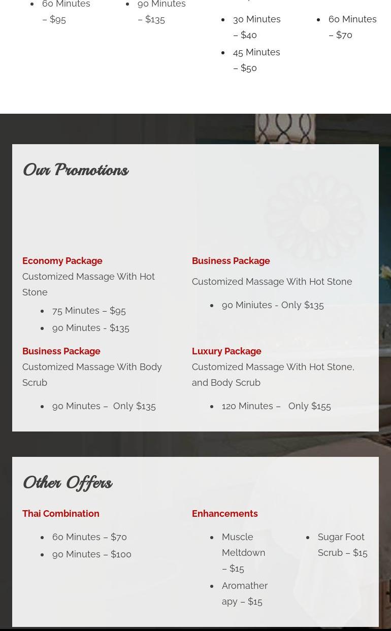 Titi is the best! To start, the location has plenty of parking around and it is easy to find. I really appreciated the detailed form she had me fill out before the massage. I knew then that she is true pro who cares about the level of service. During the massage, I liked the large, heated massage table. Relax Thai Spa had some of the best instrumental music playing throughout the massage. I couldn't have been more impressed with the quality of the massage. Her attention to detail was impressive working to unlock pressure in my hips that no else has ever touched. It was quality throughout the 90 minutes. Thank you Titi!