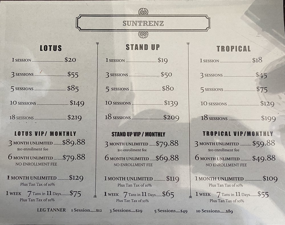 I highly recommend Sun Trenz for whatever your tanning needs are, may it be a healthy sun kissed bronze all year long, or a special event or vacation you want to look your best at. Anthony and his team will go above and beyond with a warm smile, perfect price point, clean beds and salon, adequate availability, and a great tan every time.