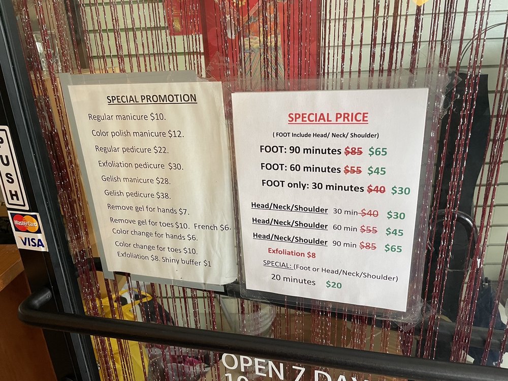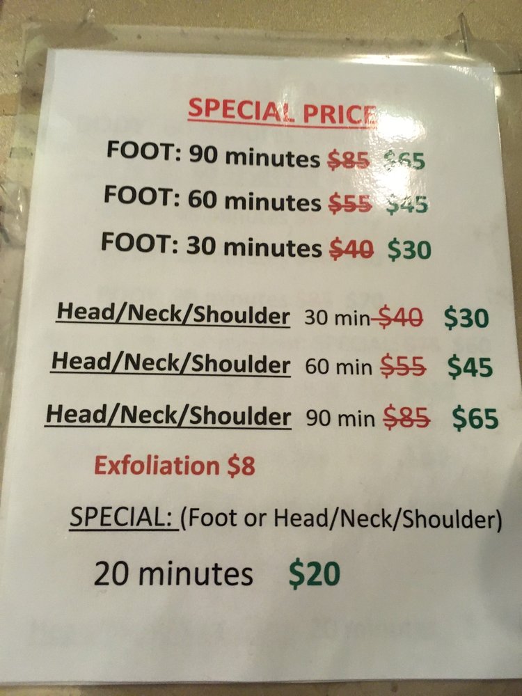 My daughters (14 and 16) and I went here today for the combo massage, which was foot/leg followed by neck/shoulder/back. It was pure heaven. We lived in China for four years this was the best massage I’ve had since I left China 15 years ago. We live near NYC, so get lots of reflexology massages, but this was top notch. Great price! If I lived here I would come all the time.