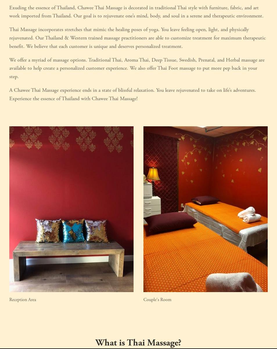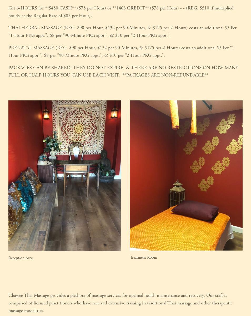 I had a great experience getting a massage from Lucky at Chawee Thai Massage. She was very experienced in dealing with knots and I felt like a new person after the massage. It was a bit intense at times, but the juice was worth the squeeze. Highly recommended in the Almaden area.