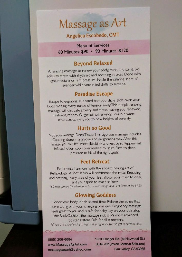 Angelica has a calming presence about her, I told her my concerns and she addressed each one. I am a massage therapist and know a good bodyworker when I see one. My back has been troubling me for sometime since I got into a front end collision. I've looked around for the best and I found it :) Thanks Angelica!!