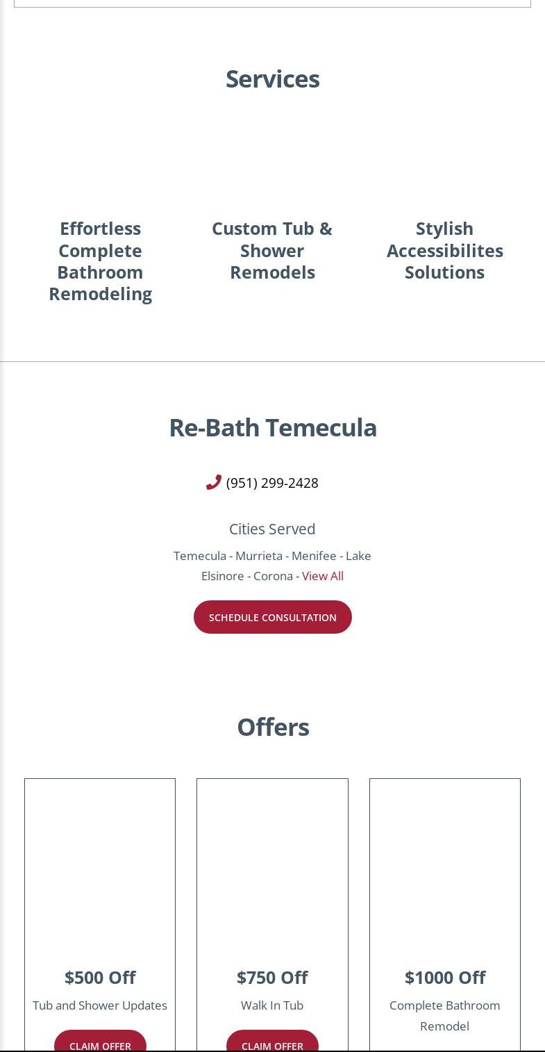 We are very pleased with our new bathroom remodel. We were on a bit of a time crunch due to leaving on vacation, and everyone at Rebath Temecula worked very hard to make the deadline. Everyone did an awesome job, starting with Jeff Hare, who was our consultant, and Cesar, who did the demo of all of the old tile. Robert and Anthony were the best and did an awesome job on the remodel. Many thanks to everyone at Rebath Temecula! We will be doing our other bathroom next year, and we will be using them once again.