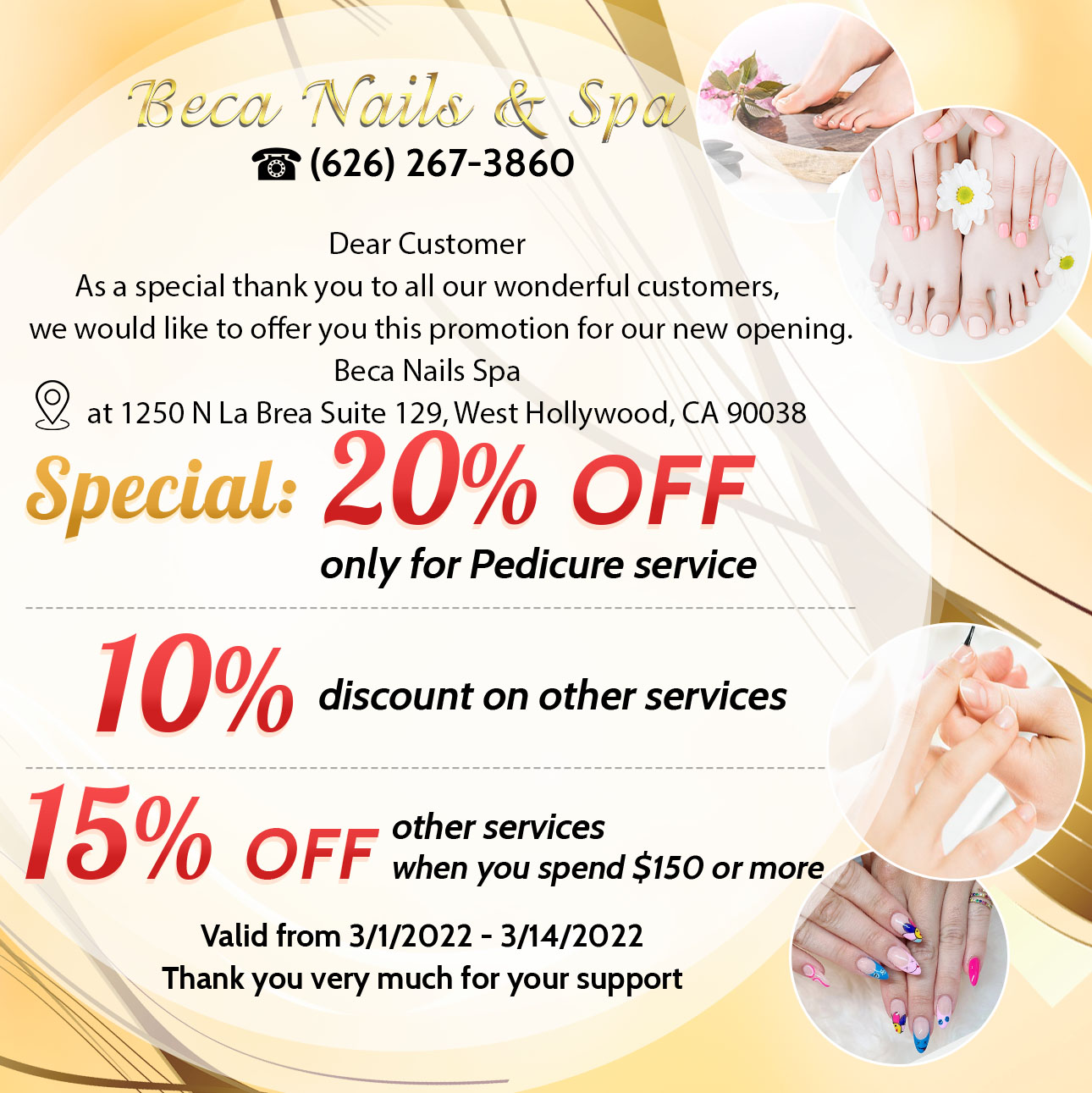 Beca Nail Spa is AMAZING! The girls give great service and do an amazing job on pedicures and manicures. The prices are good and the salon is so cute and relaxing. They are sweet ,attentive and so friendly! I love coming here! Definitely the best nail spot in Weho!