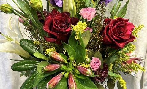 “I ordered a bouquet of flowers from Chris to be delivered to my daughter-in-law when her dad passed away. Chris put together an absolutely beautiful arrangement. The variety and quality of flowers was fantastic, I especially liked the sunflowers and hydrangeas. Chris’s customer service was over the top, she even offered to bake cookies for my grandchildren because they lost their grandpa. I highly recommend Chris and will use her again!“