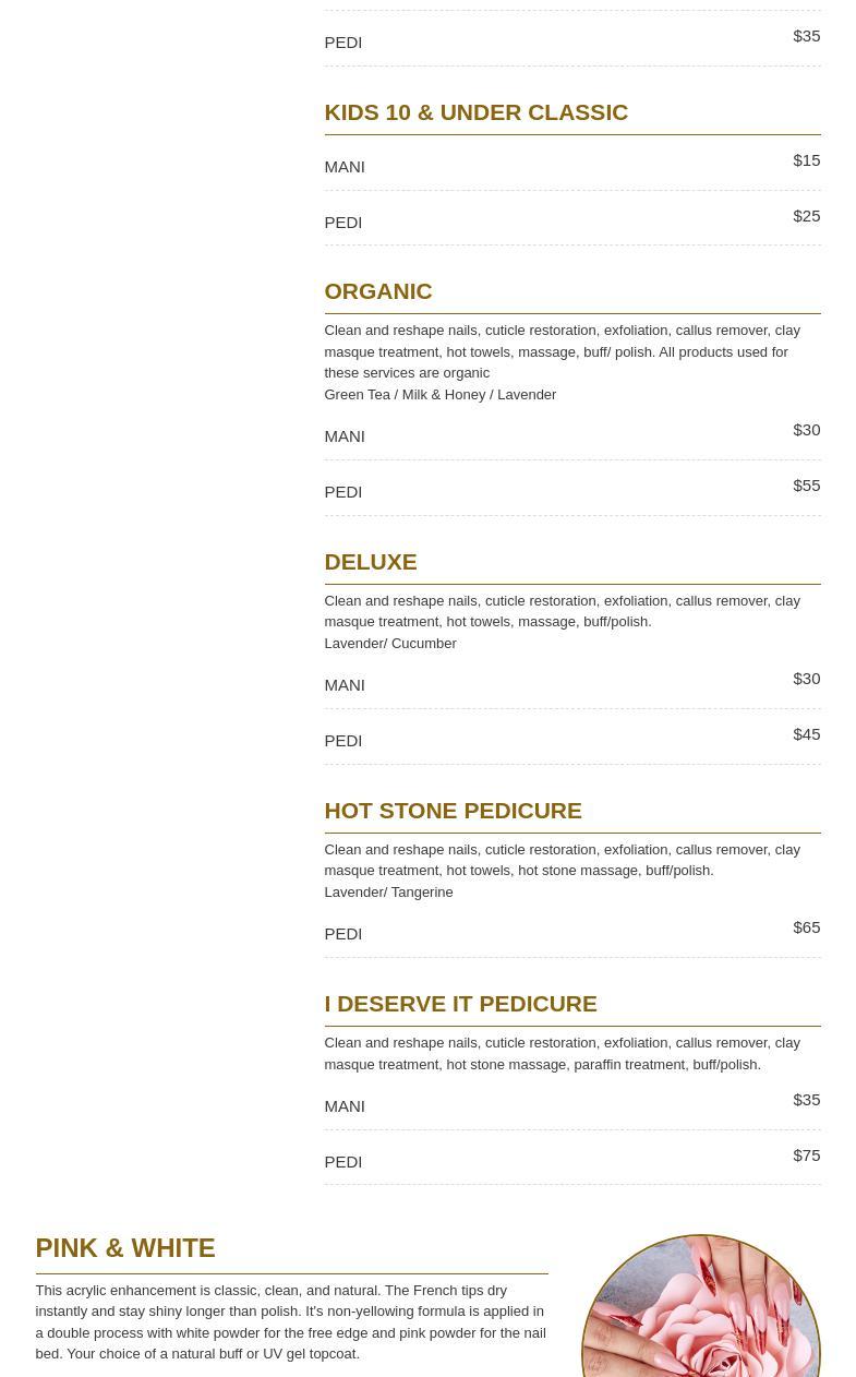 I requested a french manicure in my natural nails, I didn’t want gel. I just wanted a French manicure on my already natural nails. My nail tech kept trying to sell me on the gel polish, saying that the regular polish will chip in a few days. Which was a little strange to me because I came to this place, thinking that they would use high-quality nail polish that wouldn’t chip after just a few days. My nail tech haphazardly cut my cuticles, and because she was doing that she cut me. And then when she was doing the polish part of the French manicure, she only put one coat of polish. And the more I looked at my nails, the more I could see how choppy... read full review