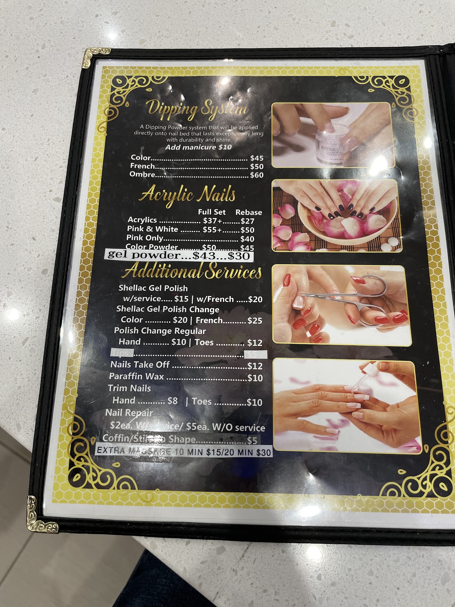 I REALLY RECOMMEND THIS PLACE. I got my nails done and I really recommend April. She did this design so fast and great. They kept in past closing time to finisj the designs THEN invited us to stay EVEN LONGER to get pedicures done becuase the day we went it was 10% off. So nice. Definitely want to come back sometime.