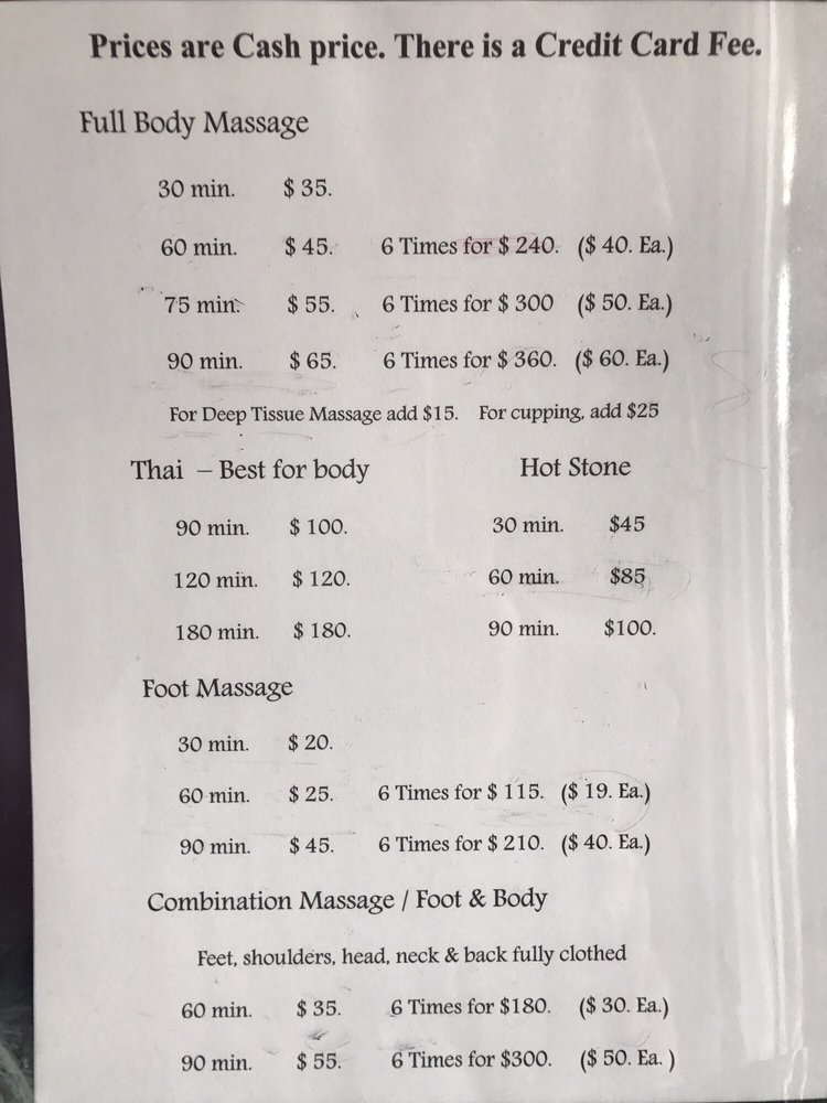 I took my mom to get a massage last weekend, we got the combo foot and back massage. The foot massage was great!!! The back massage was average. The room we were in was very cluttered and the vibe was a little weird. We paid for an hour but the time was only 45 minutes. The price was good.