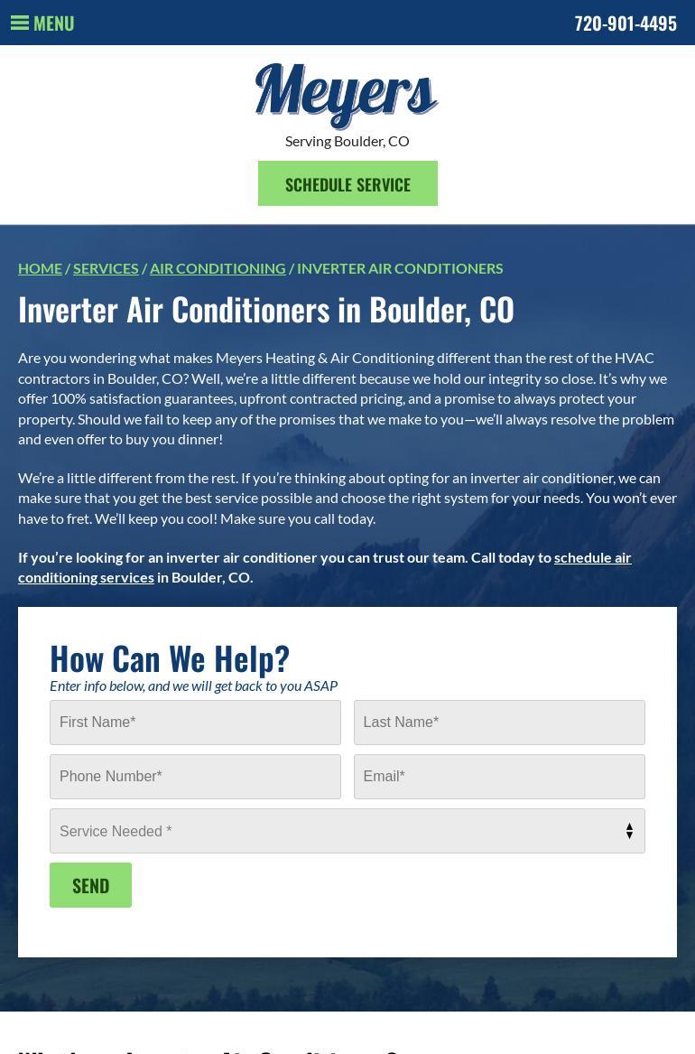 I was helped today by James from Meyers heating and air-conditioning in Boulder. He was terrific. He fixed the problem why our furnace was not going on. He then advised us of appropriate maintenance which we had not been doing. More than that he spent time explaining the unique features of our furnace, and how the way we were trying to save money by turning the temperature down at night, or when we were gone was a bad idea. We have a gas forced air furnace. We also have a condensing furnace. That second mention captures heat out of the exhausting air by capturing moisture. This raises the efficiency of our furnace significantly, from the 70's percentile to 98 percentage... read full review