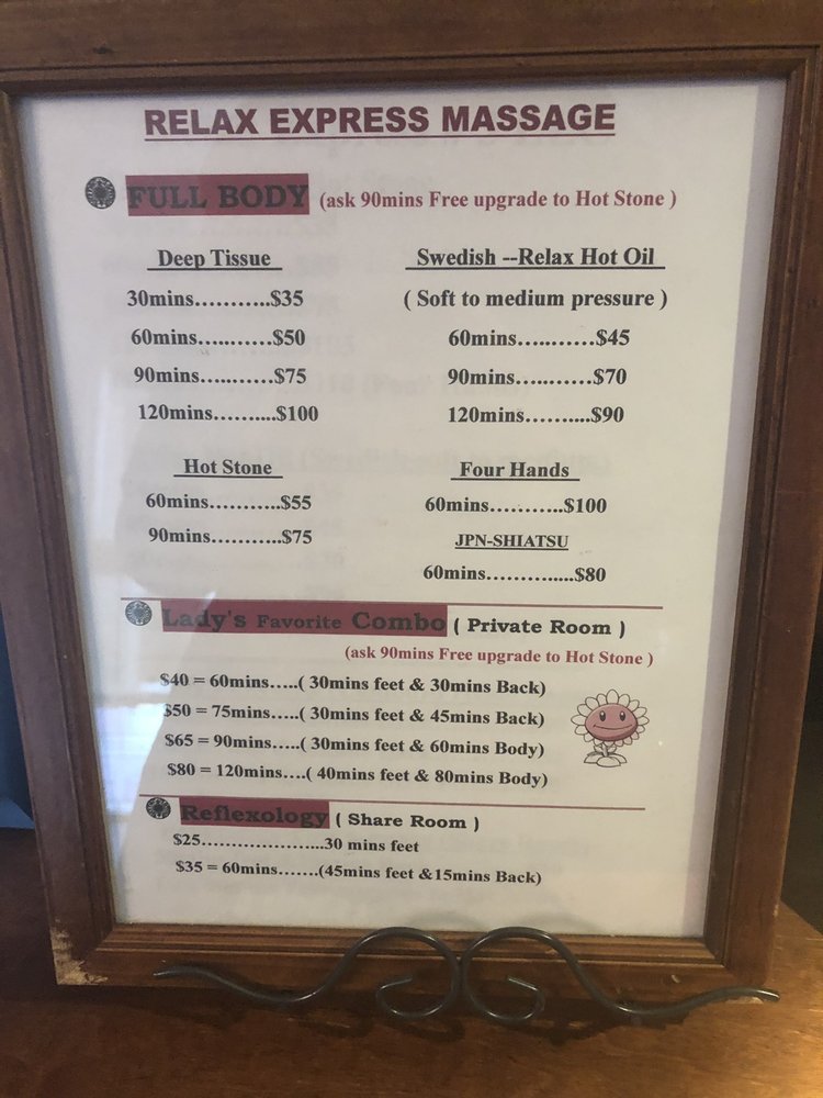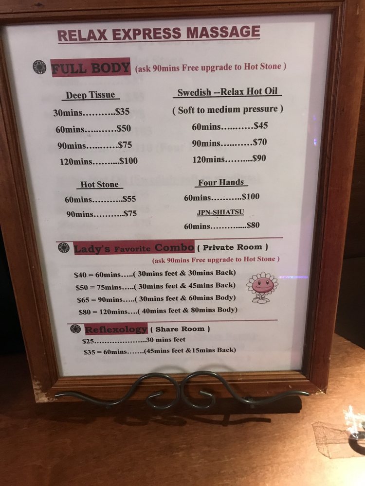 My husband and I had 90 minutes full body massage this afternoon for his birthday. Professional massage, tension removed from my shoulders right after that. Clean and neat. We will be back. Highly recommend.