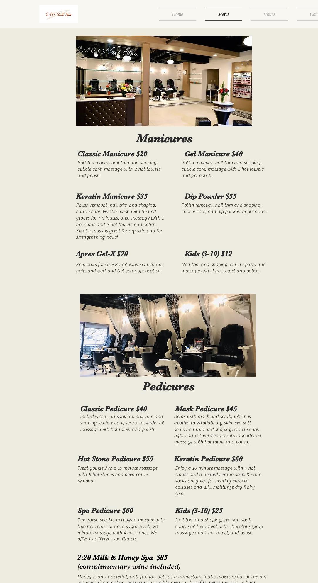 I love this place! My nails always turn out just as I like them, and the massage chairs are great. They totally know what they're doing. I went to a different place once and will not do that again. 2:20 forever!