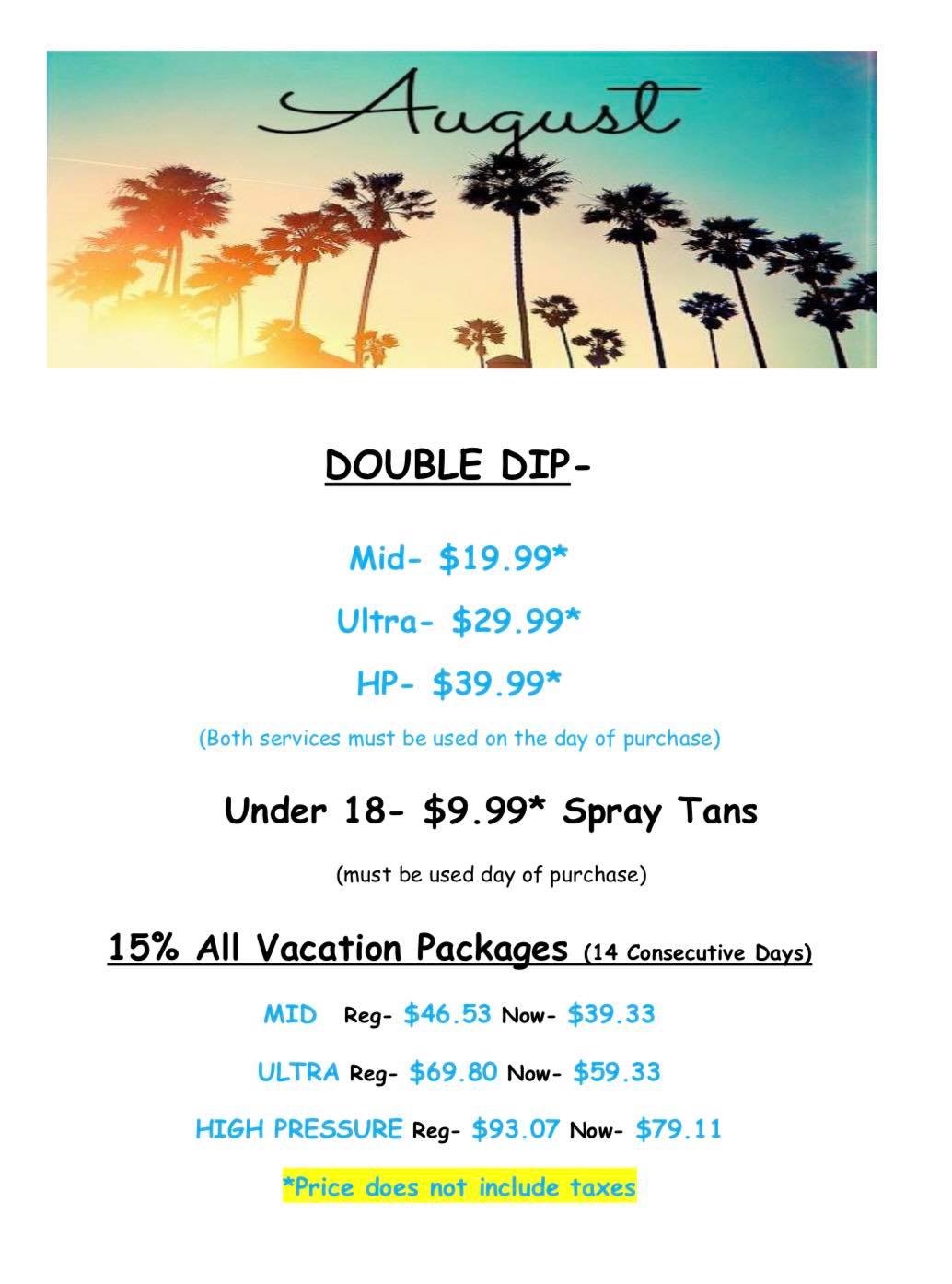 Great service! Was greeted with a smile and even had a nice conversation!! Was willing to answer any questions I had! The tanning bed was great! Noticed color right away and prices were super reasonable!!