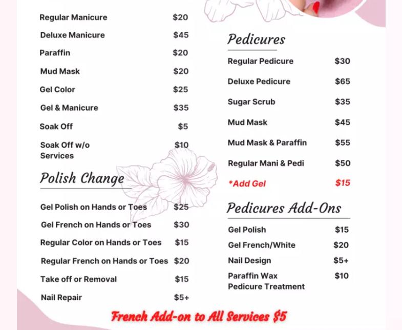 I LOVEEEE how quick they were able to give service right when we walked in! My mom took me today to get my birthday nails done, I got French tips with some deigns, and I loved the outcome so much! I’m not sure what the techs name was but it was a kind man and he was really nice, and gave great service! Will definitely be looking forward to coming back! Thank you ?